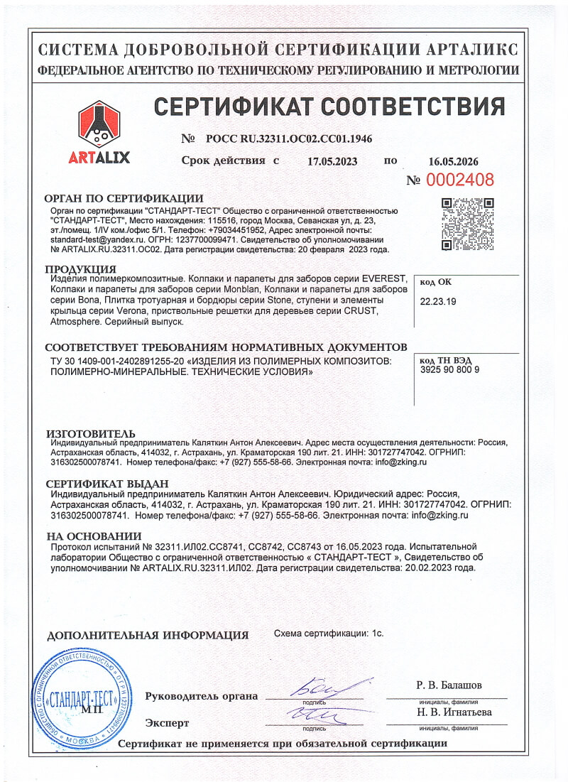 Сертификаты соответствия ZKING для Сочи